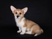 Widok z bliska ładny Corgi Welsh Puppy na białym tle