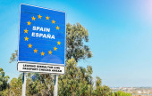 Bez porozumienia Brexit napisane na Octagon znak Stop z flagą UE na tle