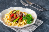 Zdjęcie "Makaron wołowy i brokuły-widok z góry" może być wykorzystywane do celów osobistych i komercyjnych zgodnie z warunkami zakupionej licencji Royalty-free. Obraz jest dostępny do pobrania w jakości wysokiej rozdzielczości do 5760x3840.