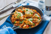 Smoky kurczak i grzyby z sosu TomTo i makaronem w misce