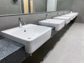 Zdjęcie "Lśniące umywalki i lustra w publicznych toaletach" może być wykorzystywane do celów osobistych i komercyjnych zgodnie z warunkami zakupionej licencji Royalty-free. Obraz jest dostępny do pobrania w jakości wysokiej rozdzielczości do 5760x3840.