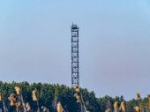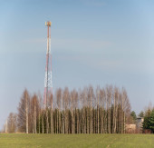 Wieża transmisyjne 5g jest wzniesiona na polu z pomocą