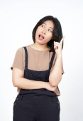Azjatycka dziewczyna w żółtej sukni pokazywanie wyrazu twarzy, aby zignorować pewne rzeczy