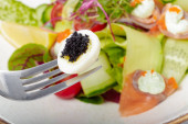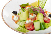 świeżego tuńczyka surowego z sałatką warzywną i sosem - zdrowa żywność