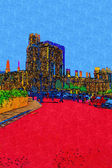 Ilustracja Warszawa gród malarstwo sztuka zewnętrzna