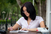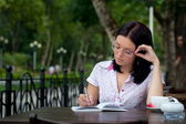 kobieta z książki w parku