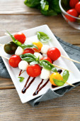 Zdjęcie "Szaszłyk z mozzarellą, pomidorami" może być wykorzystywane do celów osobistych i komercyjnych zgodnie z warunkami zakupionej licencji Royalty-free. Obraz jest dostępny do pobrania w jakości wysokiej rozdzielczości do 5760x3840.