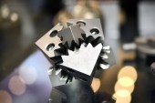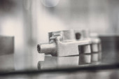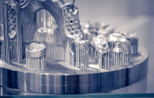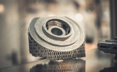 Selective Laser topnienia. Obiekt drukowany na metalu 3d drukarki zbliżenie.