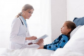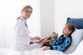 pediatrist w białej sierści i dziecko drżenie rąk w klinice