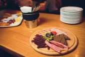 Szef kuchni, Dokonywanie zdrowe wegetariańskie Burgery z łososia odkryty na otwartą kuchnią, odprta kuhna, wydarzenie festiwalu kuchni międzynarodowej. Sprzedawcy uliczni, gotowe do odbycia na straganie żywności.