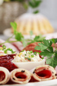 Zdjęcie "Talerz z szynką w plasterkach i wypchanych jaj." może być wykorzystywane do celów osobistych i komercyjnych zgodnie z warunkami zakupionej licencji Royalty-free. Obraz jest dostępny do pobrania w jakości wysokiej rozdzielczości do 5760x3840.