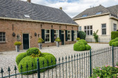 Lage Mierde, Holandia-czerwiec, 13 2019: domy ceglane budynki i pomnik Lage Mierde Holland. Południowej Holandii. Brabancja Północna