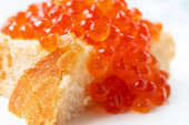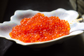 Pyszne kanapki z czerwonym kawior na ciemnym betonie rynek