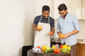Przystojny młody człowiek stojący w The kuchnia w Dom