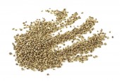 Stos proszku kolendry z nasion wyizolowanych na białym rynek