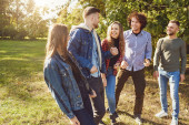 Zdjęcie "Szczęśliwy, że znajomi śmieją się w parku." może być wykorzystywane do celów osobistych i komercyjnych zgodnie z warunkami zakupionej licencji Royalty-free. Obraz jest dostępny do pobrania w jakości wysokiej rozdzielczości do 5760x3840.