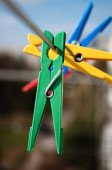 Zdjęcie "Grupa z tworzyw sztucznych i lekkich drewnianych ubrań kołki wiszące na bieliznę w słońcu, zielone rozmyte tło" może być wykorzystywane do celów osobistych i komercyjnych zgodnie z warunkami zakupionej licencji Royalty-free. Obraz jest dostępny do pobrania w jakości wysokiej rozdzielczości do 5760x3840.