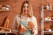 Zdjęcie "Młoda Ładna dziewczyna jest zakupy w wielkim sklepie. Dziewczyna kupuje Artykuły spożywcze w supermarkecie. Dziewczyna wybiera pachnące ciasto" może być wykorzystywane do celów osobistych i komercyjnych zgodnie z warunkami zakupionej licencji Royalty-free. Obraz jest dostępny do pobrania w jakości wysokiej rozdzielczości do 5760x3840.