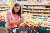 Zdjęcie "Młoda Ładna dziewczyna jest zakupy w wielkim sklepie. Dziewczyna kupuje Artykuły spożywcze w supermarkecie. Dziewczyna wybiera pachnące ciasto" może być wykorzystywane do celów osobistych i komercyjnych zgodnie z warunkami zakupionej licencji Royalty-free. Obraz jest dostępny do pobrania w jakości wysokiej rozdzielczości do 5760x3840.