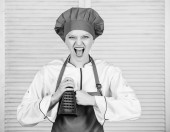 Zdjęcie "Szczęśliwa kobieta gotowanie zdrowej żywności przez przepis. Rzeźnik cięte mięso. Kobieta w kapeluszu kucharza i Apron. profesjonalnego kucharza w kuchni. Dania kuchni. Gospodyni domowa z nożem do gotowania. Śniadanie na słodko" może być wykorzystywane do celów osobistych i komercyjnych zgodnie z warunkami zakupionej licencji Royalty-free. Obraz jest dostępny do pobrania w jakości wysokiej rozdzielczości do 5760x3840.