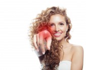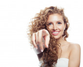 piękna dziewczyna, słuchając muzyki morze muszla na białym tle biały