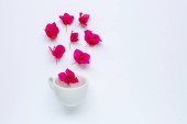 Piękny pomarańczowy kwiat Bougainvillea z liści na białym