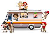 Chłopcy i dziewczęta w stroju na świeżym powietrzu