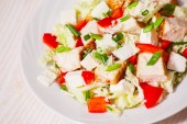 Zdjęcie "świeżej sałatki z kurczaka i warzyw" może być wykorzystywane do celów osobistych i komercyjnych zgodnie z warunkami zakupionej licencji Royalty-free. Obraz jest dostępny do pobrania w jakości wysokiej rozdzielczości do 5760x3840.