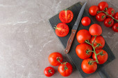 Zdjęcie "Płaska kompozycja z świeżymi dojrzałymi pomidorami na marmurowym stole. Miejsce na tekst" może być wykorzystywane do celów osobistych i komercyjnych zgodnie z warunkami zakupionej licencji Royalty-free. Obraz jest dostępny do pobrania w jakości wysokiej rozdzielczości do 5760x3840.