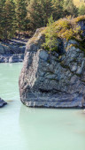 Krajobraz z górami i rzeką. Gorny Altai, Siberia, Rosja