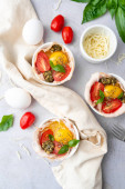 Turcja Stroganoff na białym stole z drewna z zielonych fasoli i przypraw