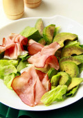 Wyśmienity sałatka z brzoskwiniami i bresaola (karkówki)