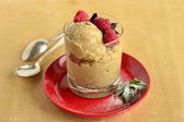 Krem z orzechów nerkowca z truskawkami, deser dla gastronomii uroczystości.