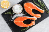 Steki z łososia i przyprawy do gotowania na czarnym łupku
