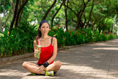 sport kobieta jest rozciąganie mięśni przed treningiem