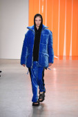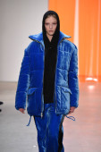 Nowy Jork, NY-12 lutego: model idzie na pas startowy John John pokaz mody w Nowym Jorku Fashion Week w lutym 12, 2019 w NYC.