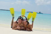 szczęśliwa młoda para baw się na plaży
