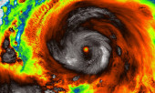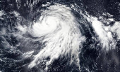 Super tajfun nad oceanem. Oko huraganu. Widok z kosmosu niektóre elementy tego obrazu dostarczone przez NASA