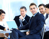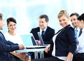 portret ładny biznes kobieta uśmiechając się z ludźmi z tyłu