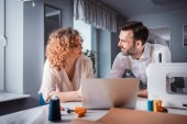 Bezpośrednio nad widokiem pozytywnej pięknej pary w dżinsy siedzi na podłodze parkiet w kuchni i picia czerwonego wina na rocznicę