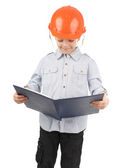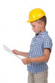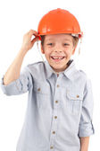 dziecko w kasku budynku