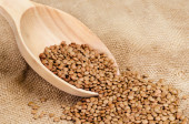 Zielona soczewica ekologiczna w białej misce na białym drewnianym rynek
