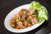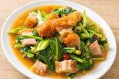 mieszać smażone kapusta z chrupiąca wieprzowiną - chińskie jedzenie