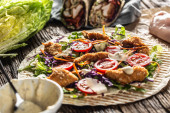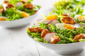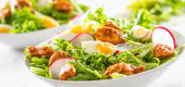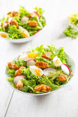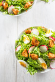 Sałatka z kawałkami mieszanych kawałków jaj z kurczaka rzodkiewki i oliwy z oliwek