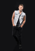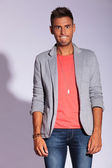 przypadkowy człowiek dostosowuje swoją czapkę i uśmiechy