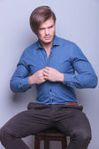 biznesmen z ręki na brodzie