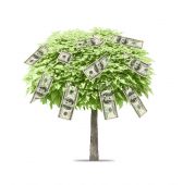 koncepcja, drzewo pieniądze na trawie, na białym tle