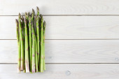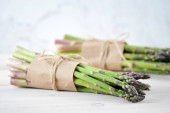 Zdjęcie "Dwa pęki świeżego szparagów na lekkiej powierzchni drewnianej. Widok z góry. Zbliżenie. Makrofotografii." może być wykorzystywane do celów osobistych i komercyjnych zgodnie z warunkami zakupionej licencji Royalty-free. Obraz jest dostępny do pobrania w jakości wysokiej rozdzielczości do 5760x3840.