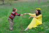 mama i syn na spacer