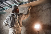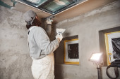 Zdjęcie "Workman tynkowania ścian gipsowych wewnątrz domu." może być wykorzystywane do celów osobistych i komercyjnych zgodnie z warunkami zakupionej licencji Royalty-free. Obraz jest dostępny do pobrania w jakości wysokiej rozdzielczości do 5760x3840.
